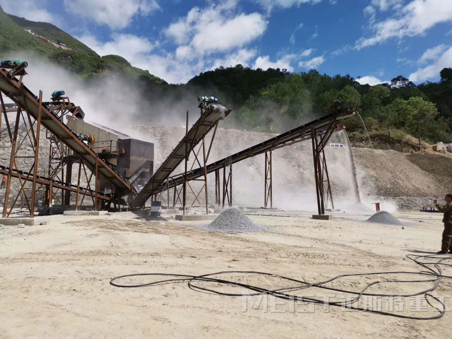 細碎后的石料由振動篩進行物料篩分,篩分出幾種不同規格型號的石子,能夠滿足粒度要求的石子經由成品皮帶輸送機送往成品料堆。