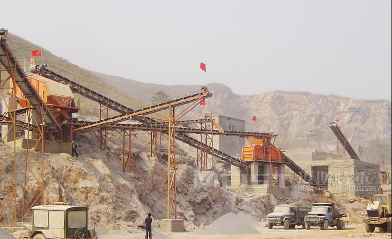 一次破碎一般為開路生產,處理料場來料,常用一次破碎設備有顎式破碎機。