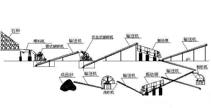破碎石頭的設備種類很多,不同的設備適合不同的物料,產出的石子也不同,我們要根據實際情況選擇合適的機械設備。一般來說,一條完整的石頭破碎生產線需要的主要設備有: 給料機、顎式破碎機、圓錐式破碎機/反擊式破碎機、可逆式制砂機/沖擊式制砂機、振動篩、皮帶輸送機、電控系統等,破碎設備的型號選配可以根據實際情況選擇。